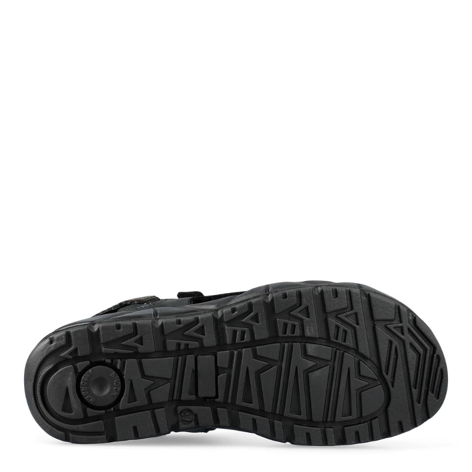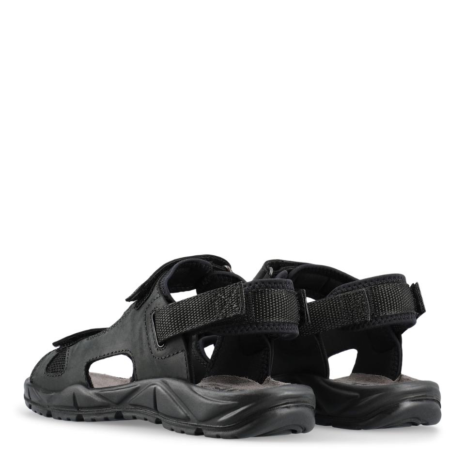 Av slitstark nubuck. De många justeringsmöjligheterna gör det enkelt att få sandalen att sitta bra och bekvämt på foten. Yttersulan är både halkhämmande och stötabsorberande.